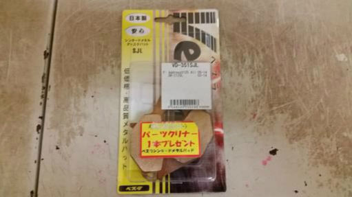 二輪館で購入したベスラのパッドです。会計時、パーツクリナー1本おまけ
