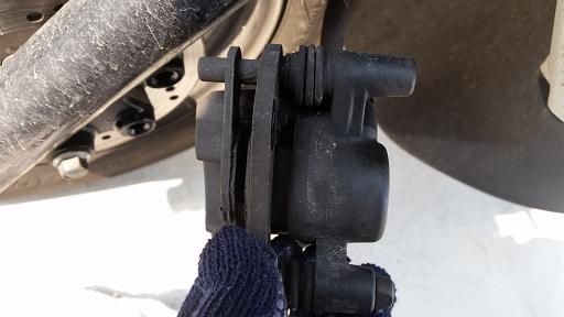 キャリパーをしっかり持って力を掛けて緩めました。 ピンはかなり汚れ、若干サビが
