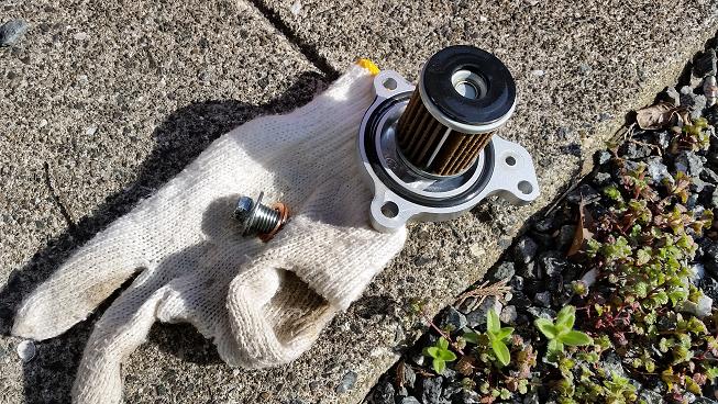 フィルターのふたを外す時、中の溜まったオイルが漏れるので注意です。