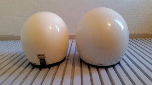 2018年12月25日 TT&CO 500TX 比較 TT&CO 500TX スモールジェットと他社のスモールジェットの大きさを比べてみました。(ちなみに風呂場で撮影)・正面左側が500TX、右側がネオライダースのES-3 スモールジェットです。やはり500TXはサイド部分がシェイプされ細身のシルエットですね。大きさの違いは一目瞭然です(・∀・)・横側もはやサイズ感うんぬんの前に大人用とキッズ用みたいです(; ̄Д ̄)・後ろ側正面から比べるより大きさの違いが際立って見えます。・上側もうヘルメットの親子にしか見えない( ^ω^)・・・ タグ :#TT&CO#500TX#スモールジェット#比較#ネオライダース